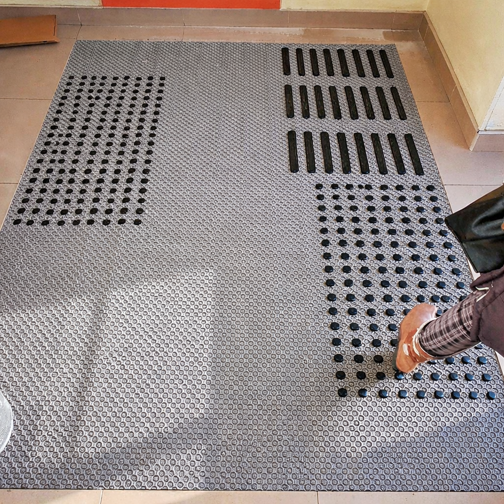В собранном виде образует уникальное грязезащитное покрытие, а при использовании индикаторов обладает еще и тактильными свойствами.
