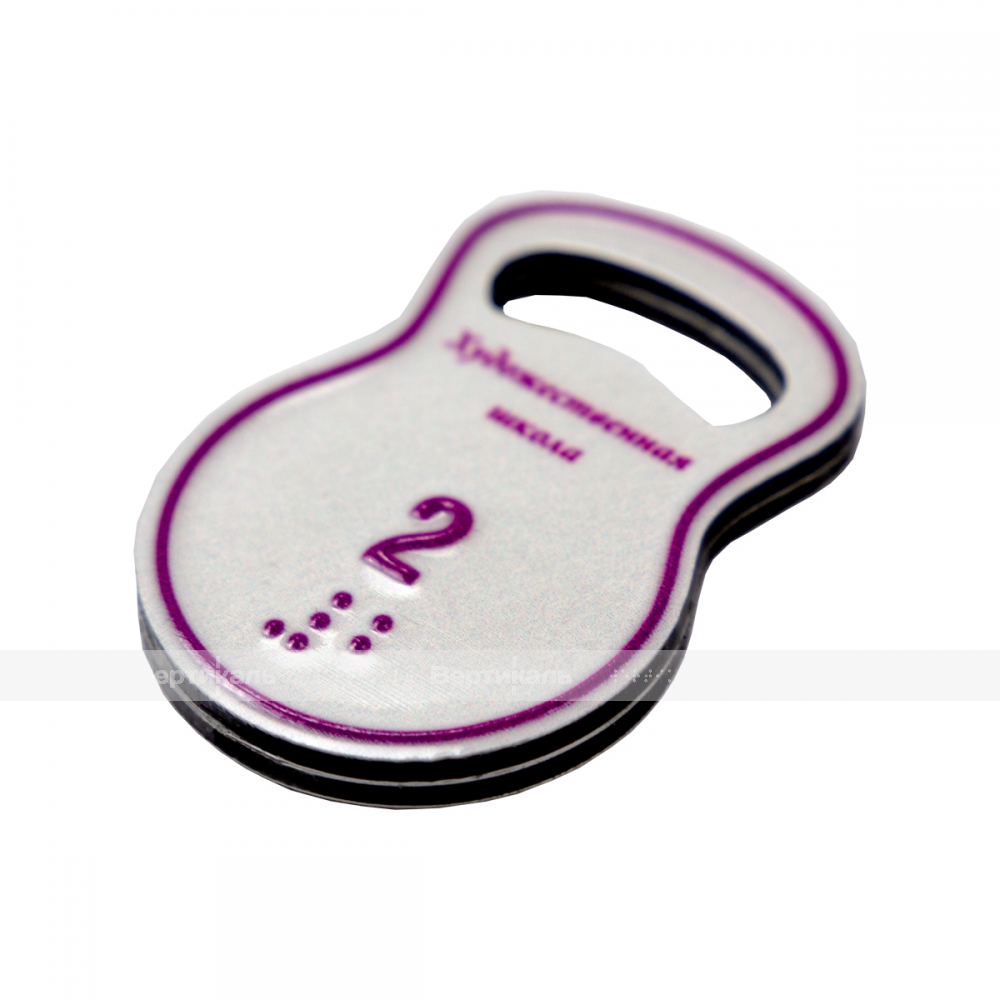 Гардеробные номерки криволинейной формы двусторонние на основе алюминиевой композитной плиты 3 мм с защитным покрытием 65 х 45 мм