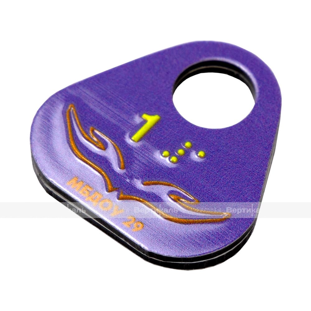 Гардеробные номерки треугольной формы тактильные двусторонние на основе алюминиевой композитной плиты 3 мм с защитным покрытием 60 х 60 мм