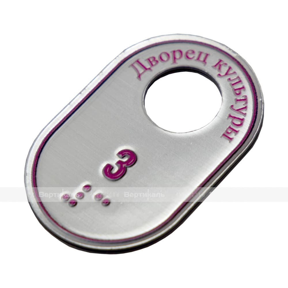 Гардеробные номерки тактильные овальной формы двусторонние на основе ABS с защитным покрытием 70х45 мм