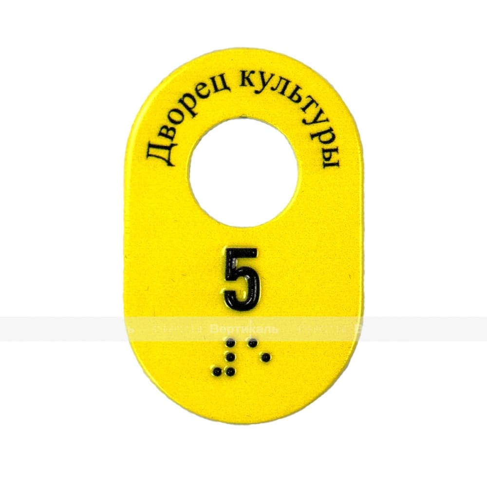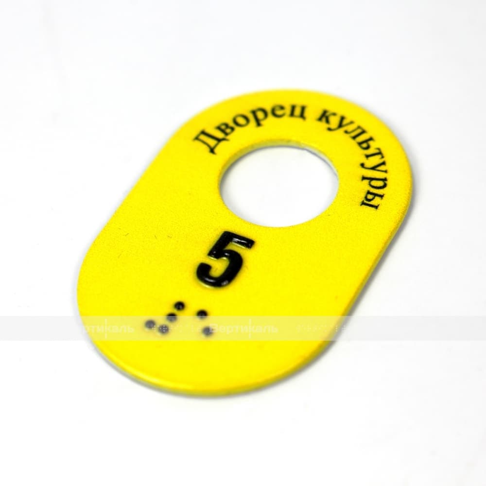 Гардеробные номерки тактильные овальной формы односторонние на основе стали 2 мм с защитным покрытием 70 х 45 мм
