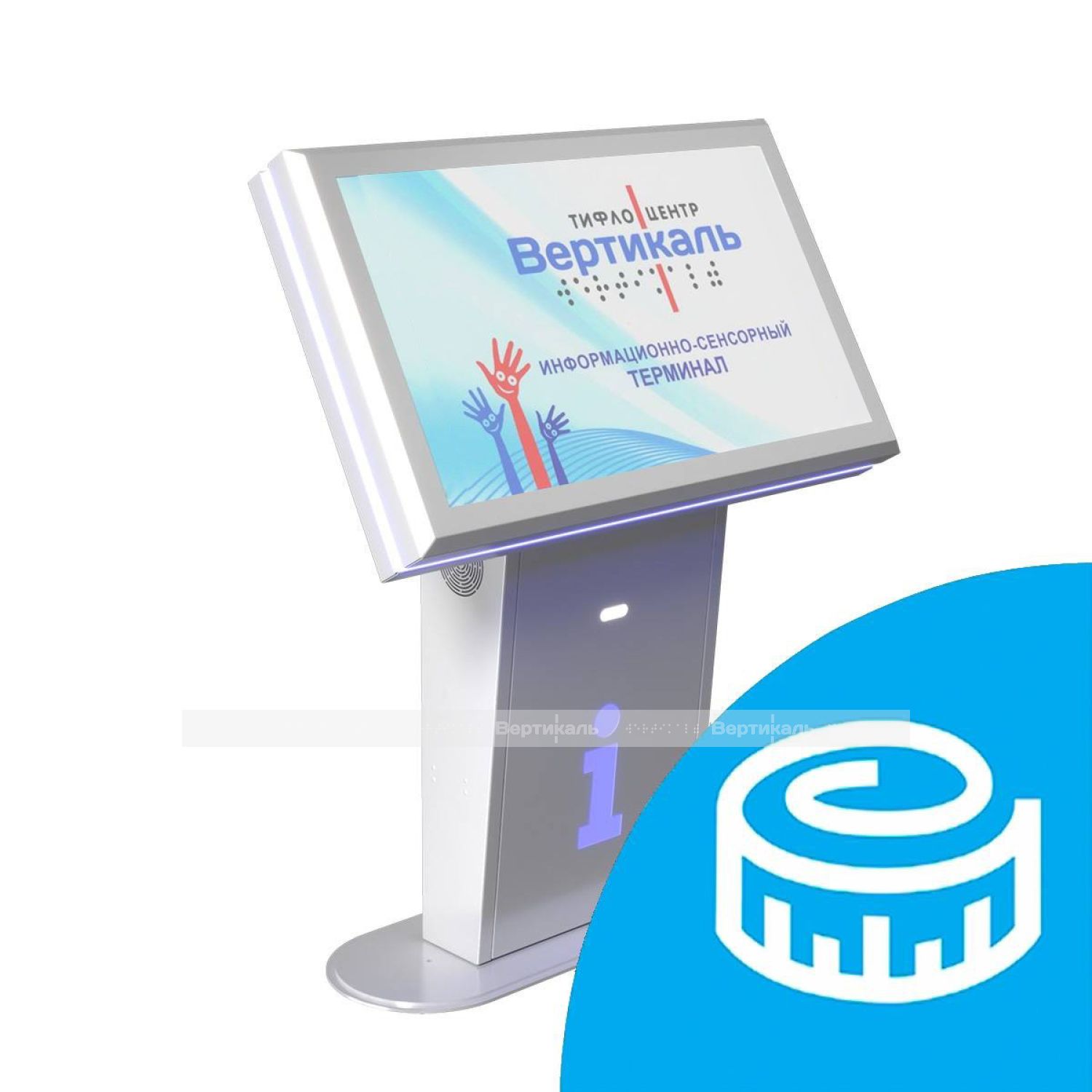 Сенсорный информационный терминал "INFO-VERT-2(43)D" специально разработан для использования его в качестве информационного устройства лицам с ограничениями по здоровью (слабовидящими, в коляске). Антивандальный, стальной корпус с контрастной контурной подсветкой, наклонная сенсорная LED-панель 43, предустановленное программное обеспечение с функцией чтения с экрана и адаптивным меню для инвалида. Дополнительно устанавливаются функции для слабослышащих.