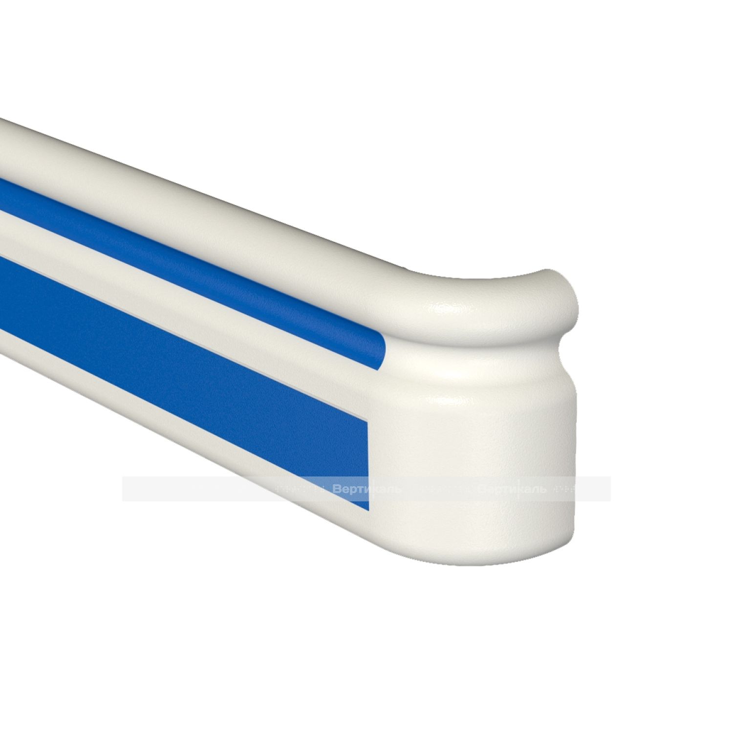 - С целью соответствия визуального облика изделия поручень изготовлен в двухцветном, контрастном исполнении (параллельные, чередующие полосы синего и белого цвета).