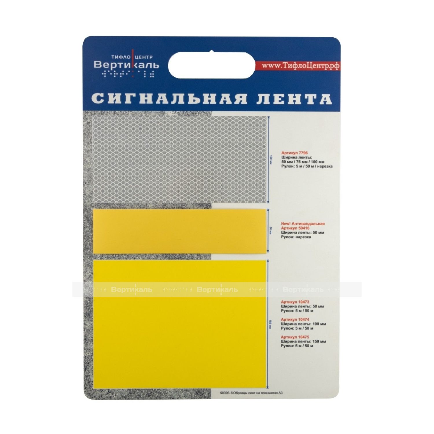 Демонстрационный планшет образцов сигнальных лент, предназначенных для контрастной маркировки ступеней и дверных проёмов, с целью обеспечения безопасного движения людей с ограниченной функцией зрения.