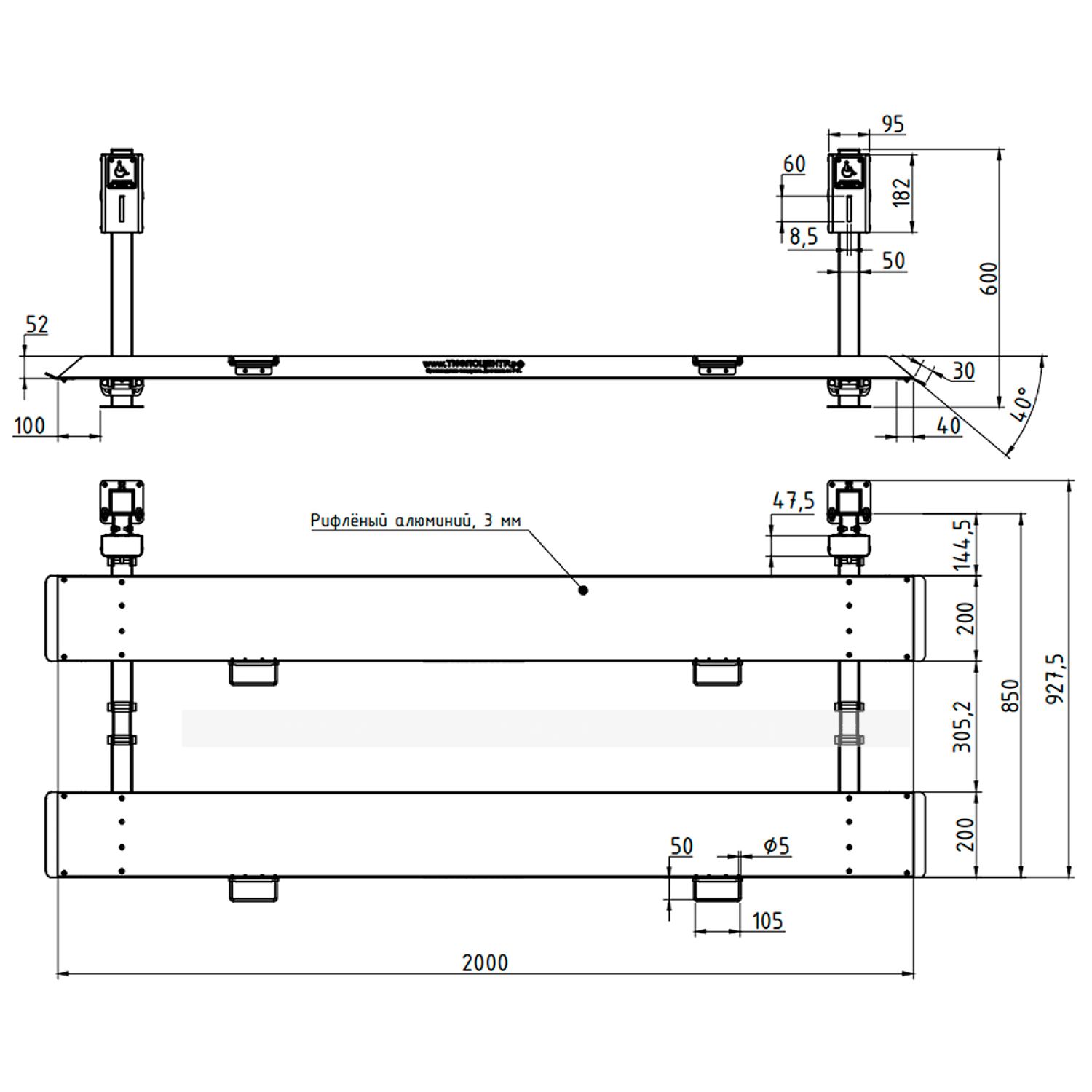 Пандус откидной, на стойках, с противоскользящим покрытием, из рифлёного алюминия, 3 мм