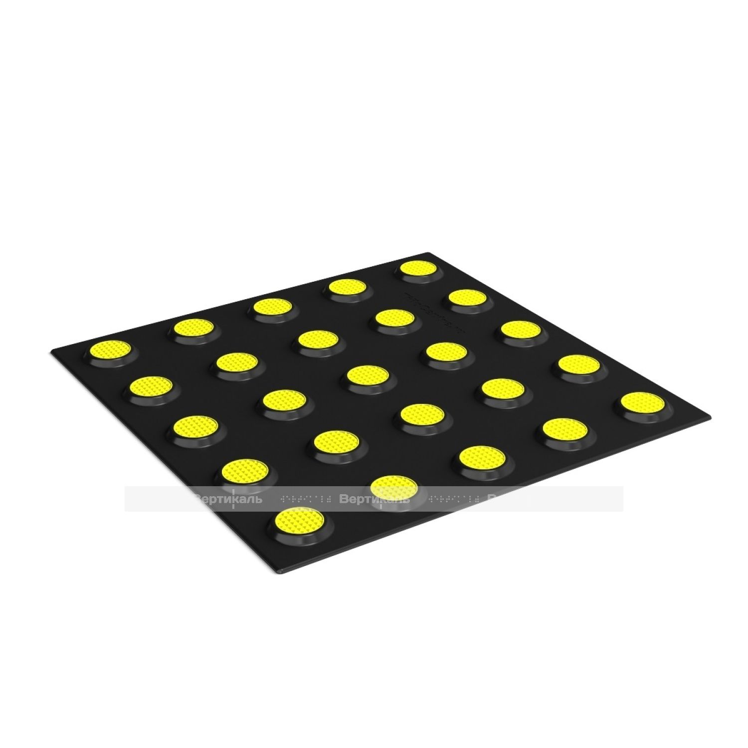 Тифлоцентр «Вертикаль» разработал и вывел на производственный уровень инновационную тактильную продукцию, полностью отвечающую нормативным требованиям ГОСТ Р 52875-2018 «Указатели тактильные наземные для инвалидов по зрению». Данный вид самоклеящегося ТНУ в черной расцветке имеет полиуретановое основание с желтыми контрастными сменными вставками из полистирола и предназначен для укладки внутри и снаружи помещений с большим потоком посетителей.