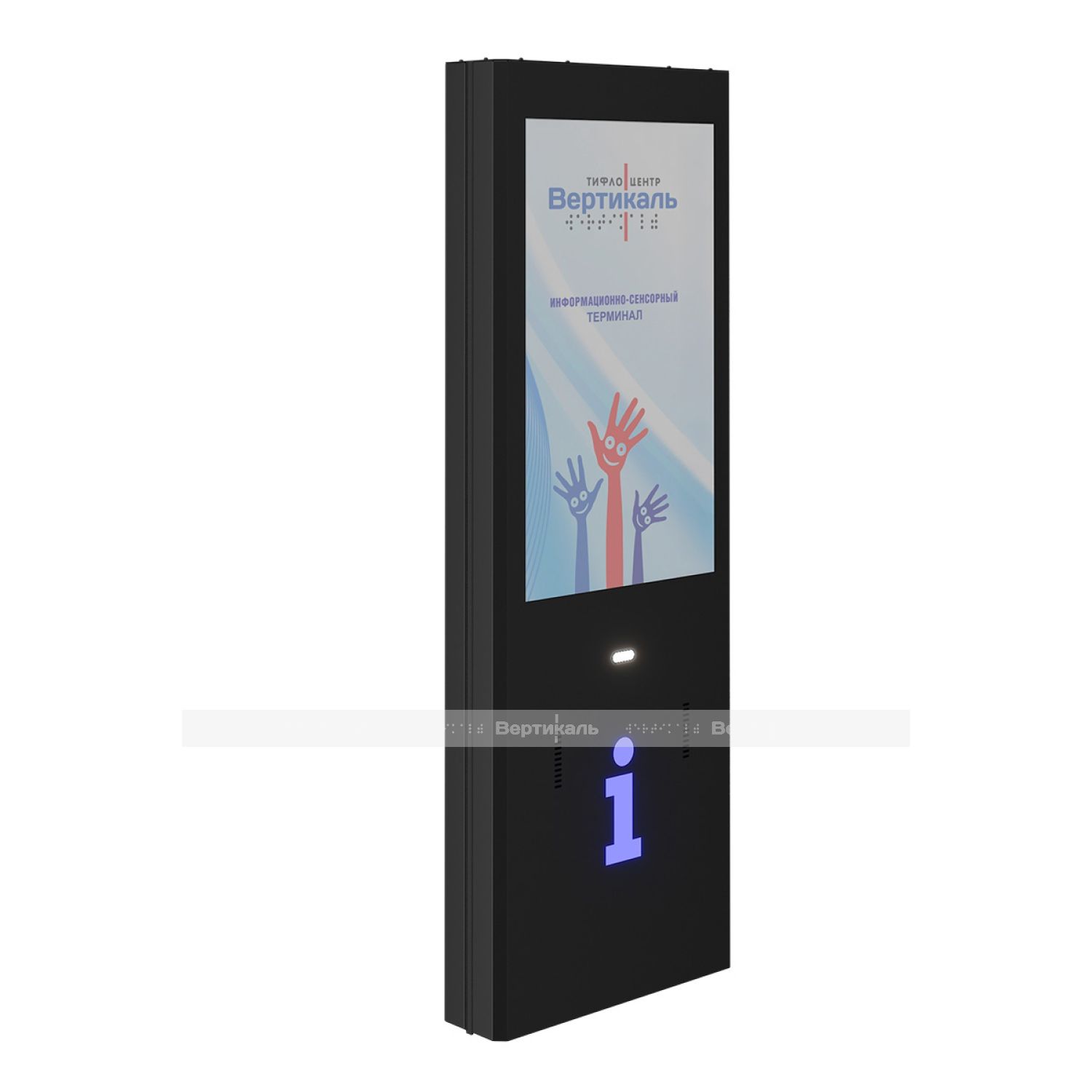 Сенсорный информационный терминал специально разработан для использования его в качестве информационного устройства лицам с ограничениями по здоровью (слабовидящих, в коляске).