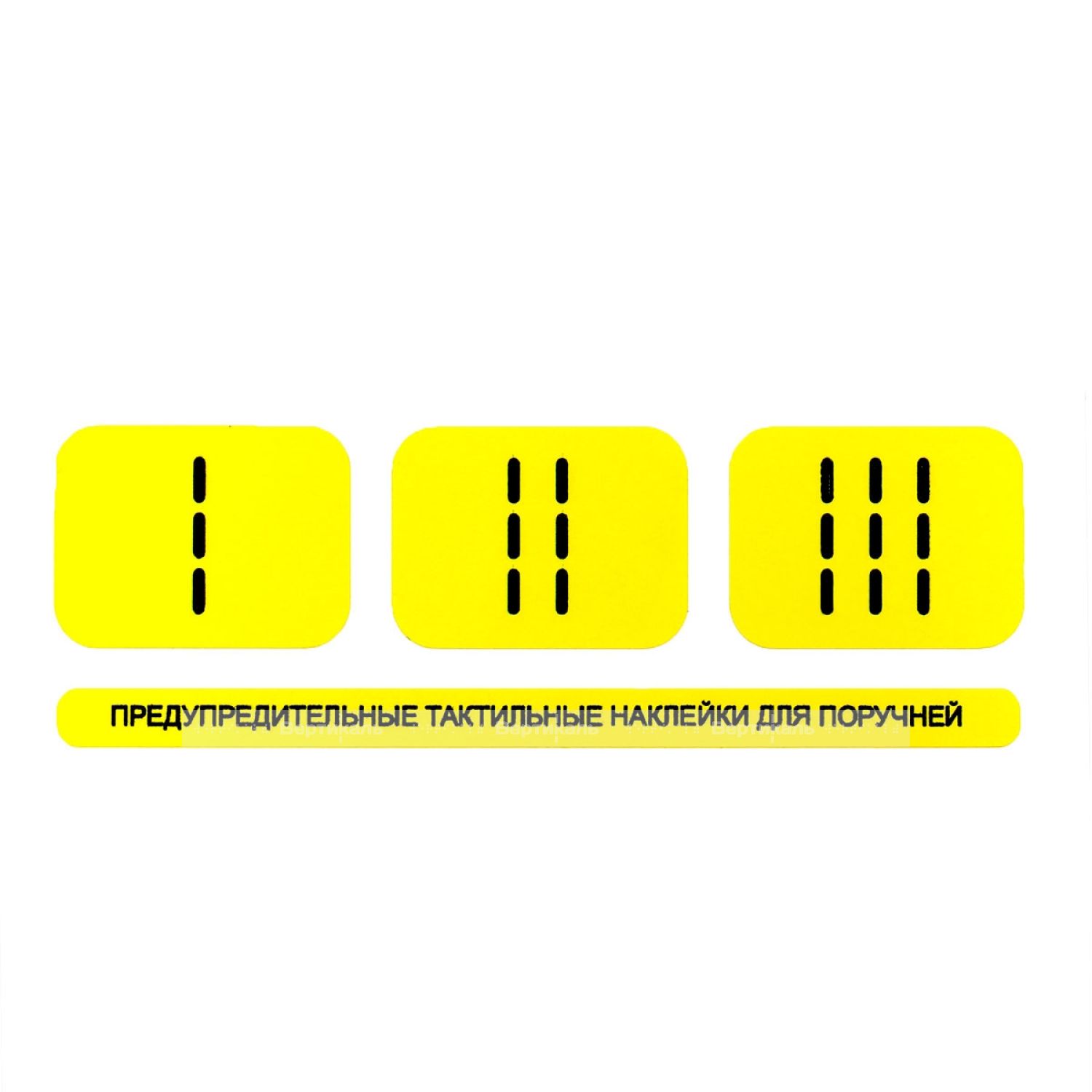 Набор таких наклеек на поручни предназначены для обозначения доступной информации места расположения. Наклейки доступны для восприятия слепыми и слабовидящими людьми. Рекомендован к применению ВОС, гос. программой "Доступная среда".