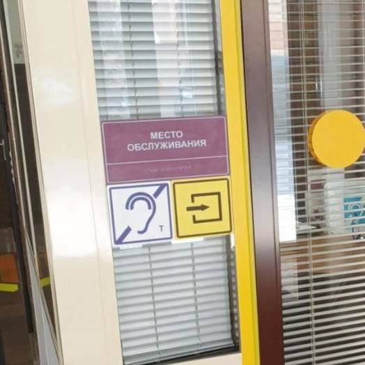 Указатель — обозначение помещения с индукционной петлей. Обладает тактильным эффектом. Доступен для восприятия незрячими и слабовидящими людьми.
