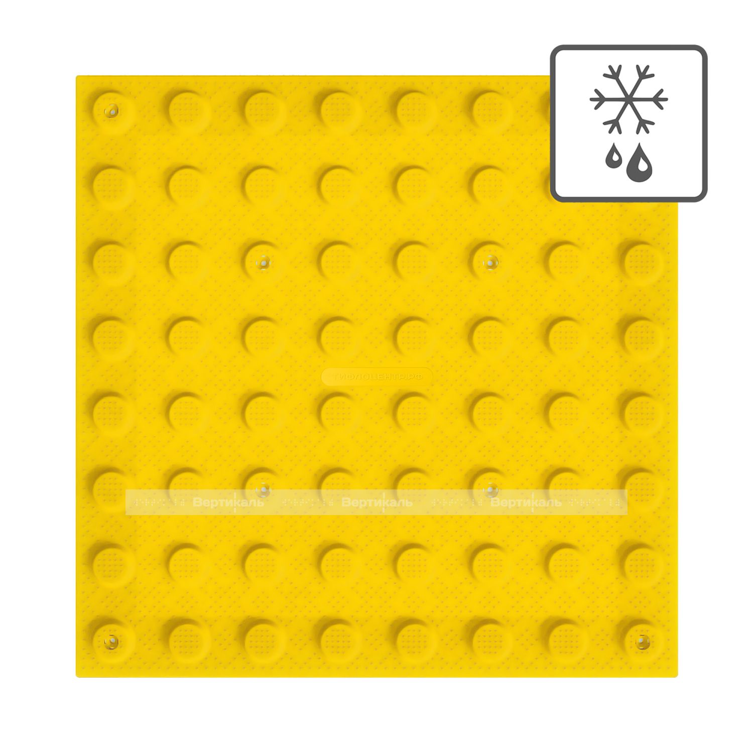 Плитка тактильная (преодолимое препятствие, поле внимания, конусы линейные) противоскользящая, 500х500х5, ПУ, желтый