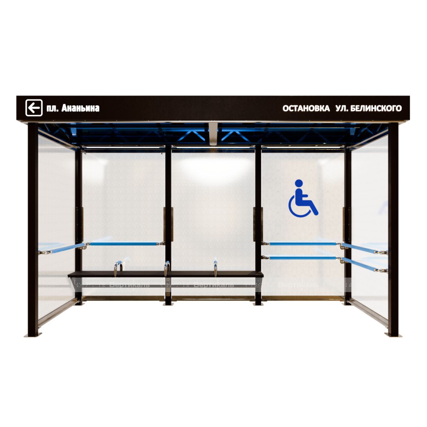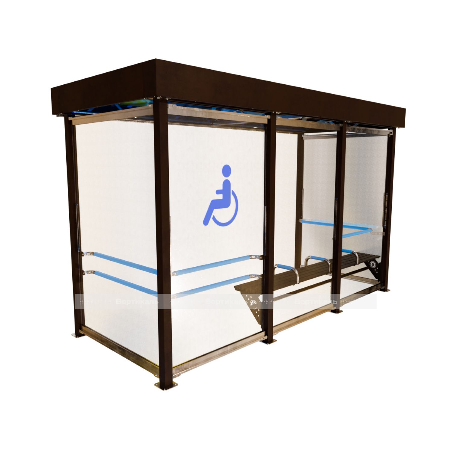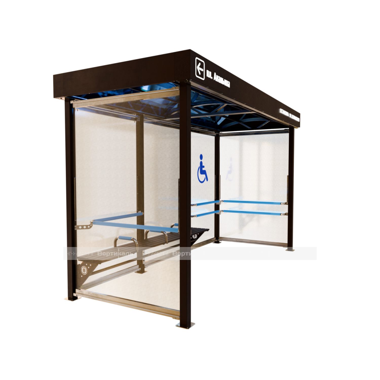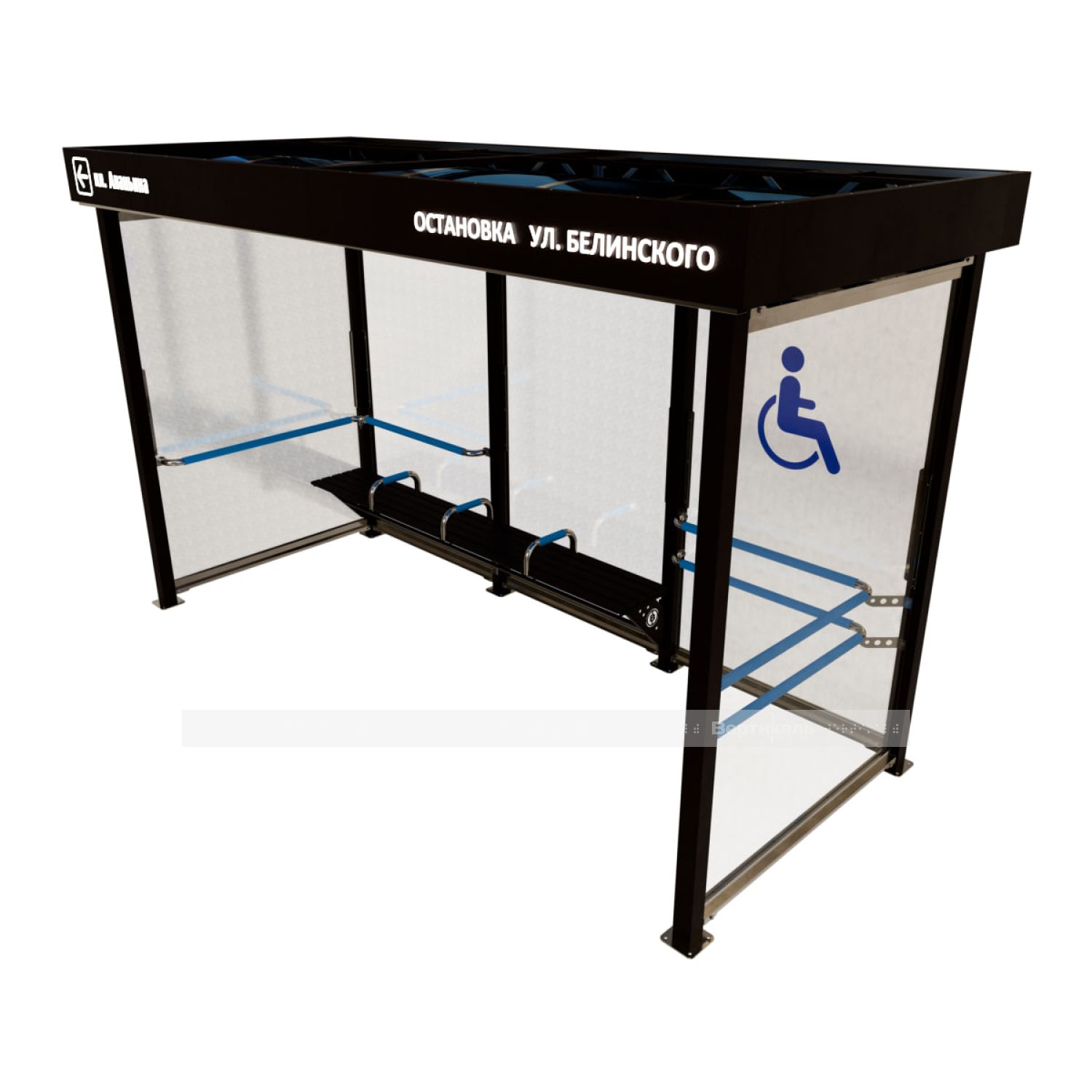 Автобусная остановка эконом-класса для маломобильных групп населения представляет собой антивандальный автопавильон, разработанный в соответствии с требованиями СП 59.13330 «Доступность зданий и сооружений для маломобильных групп населения». Модель входит в серию остановочных автобусных павильонов и подходит для установки в городских и пригородных зонах.