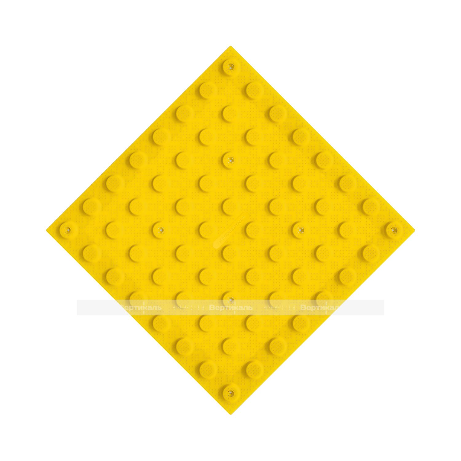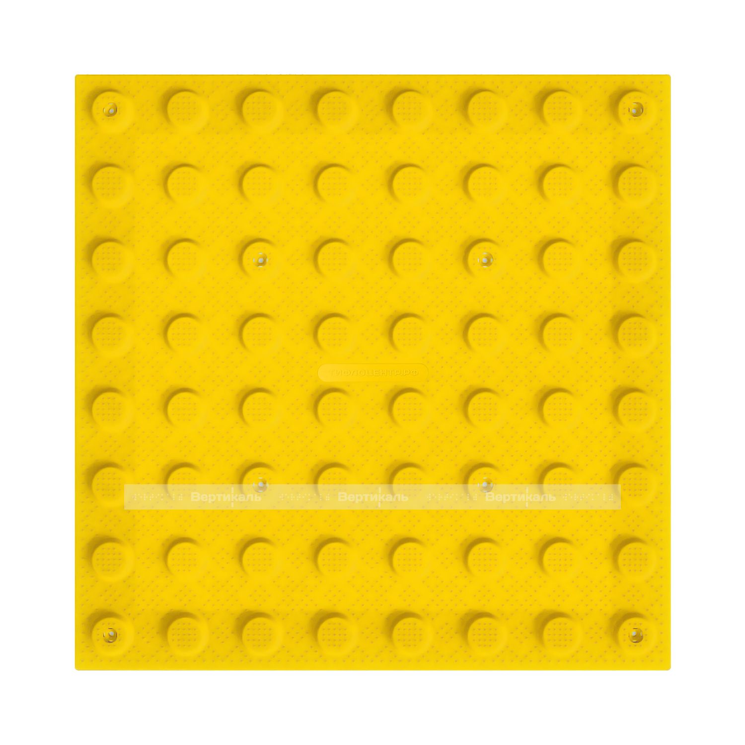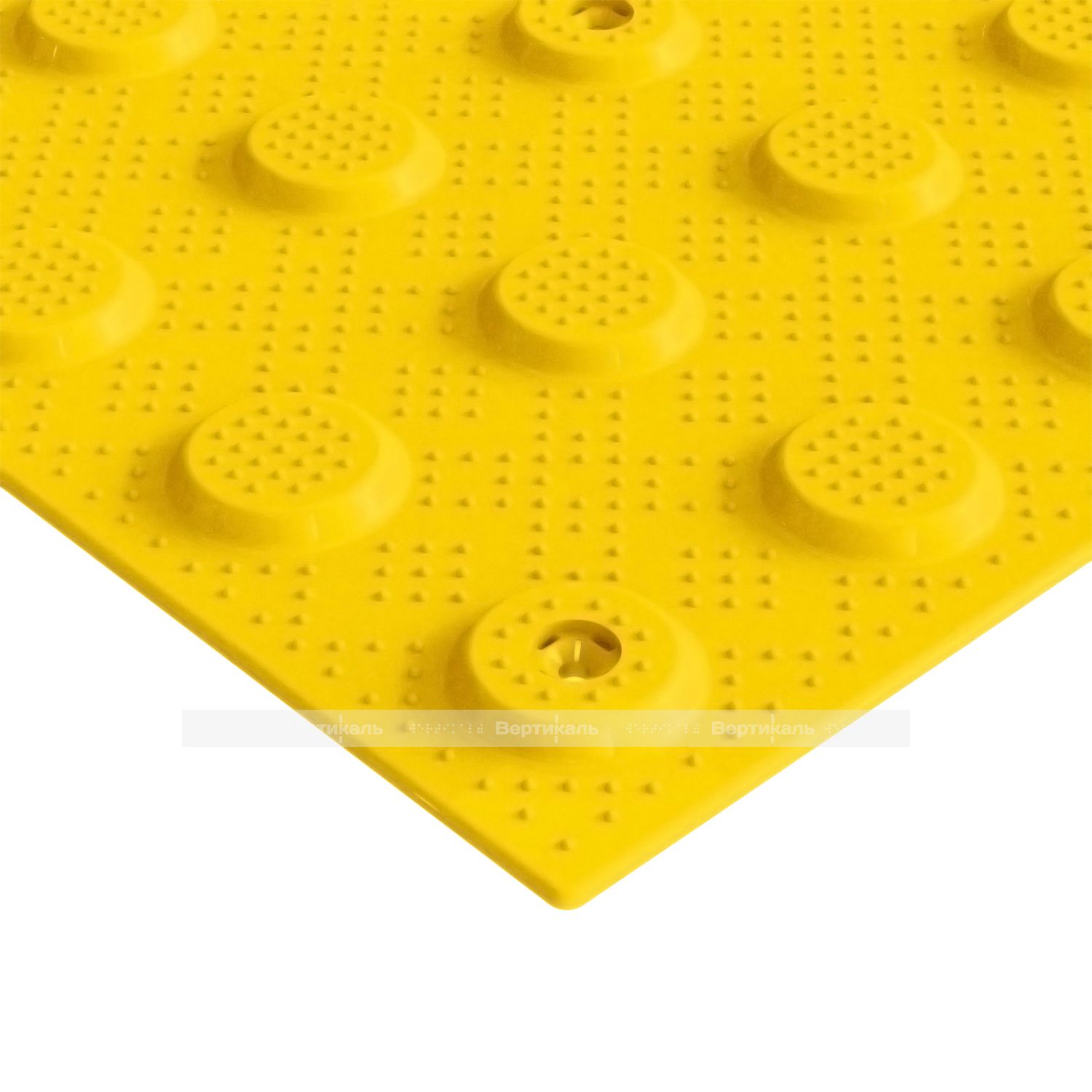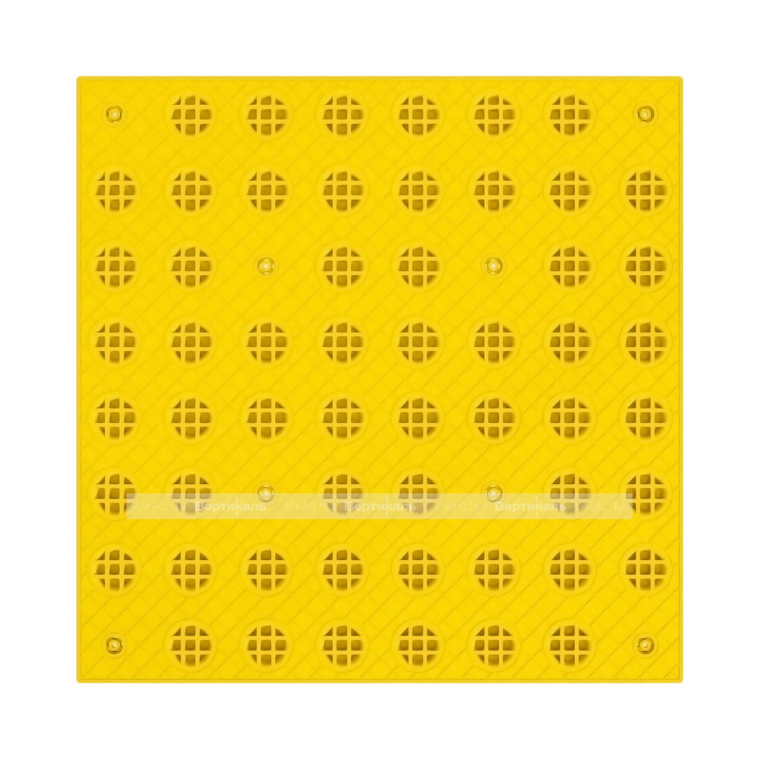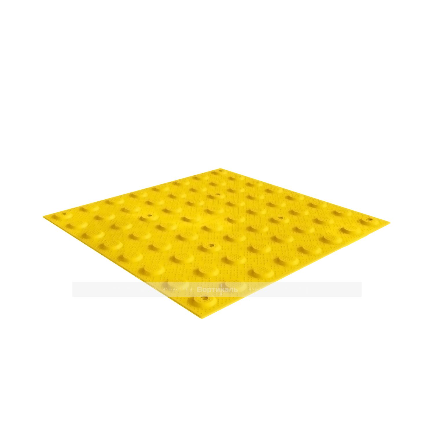 Плитка тактильная (преодолимое препятствие, поле внимания, конусы линейные) противоскользящая, 500х500х5, ПВХ, желтый