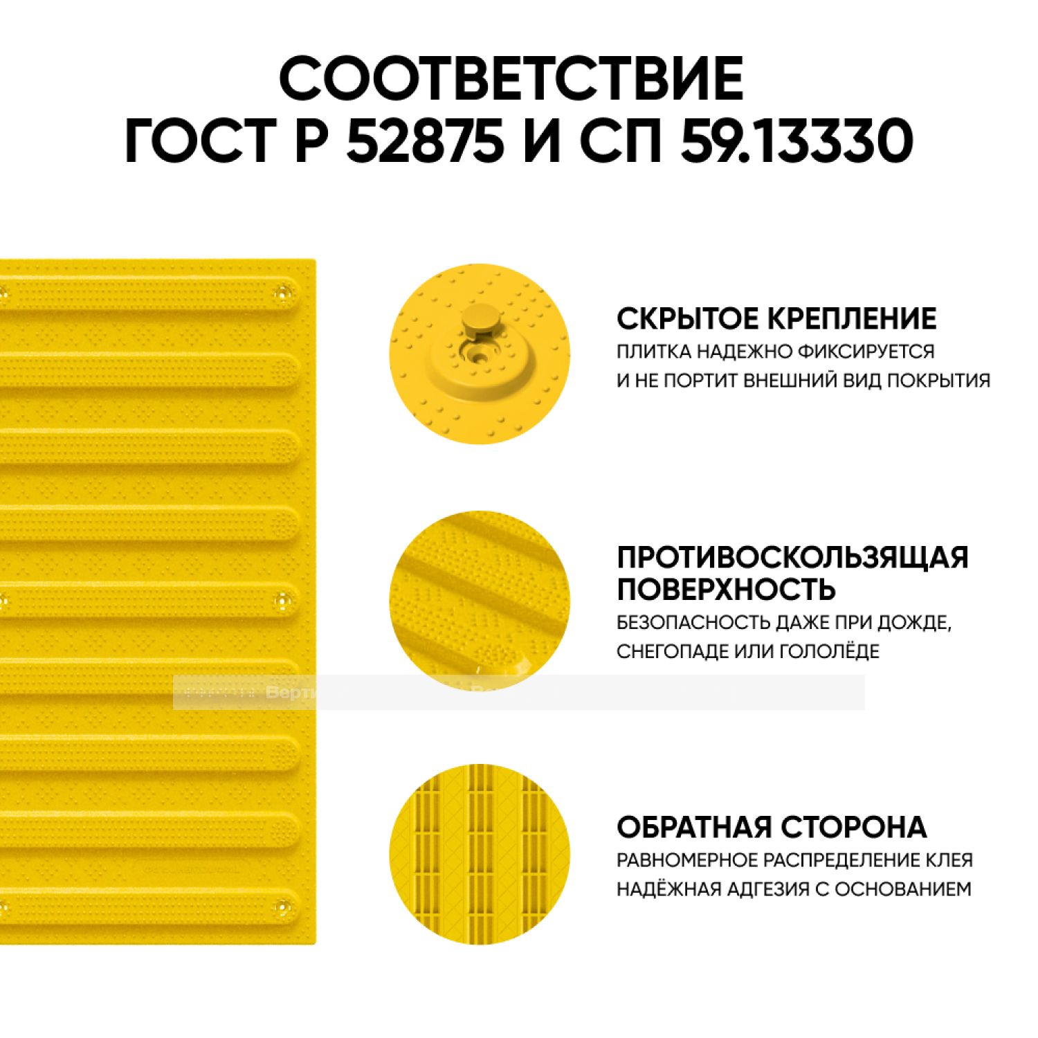 Плитка тактильная (направление движения, полоса) противоскользящая, 500х540х5, ПВХ, желтый