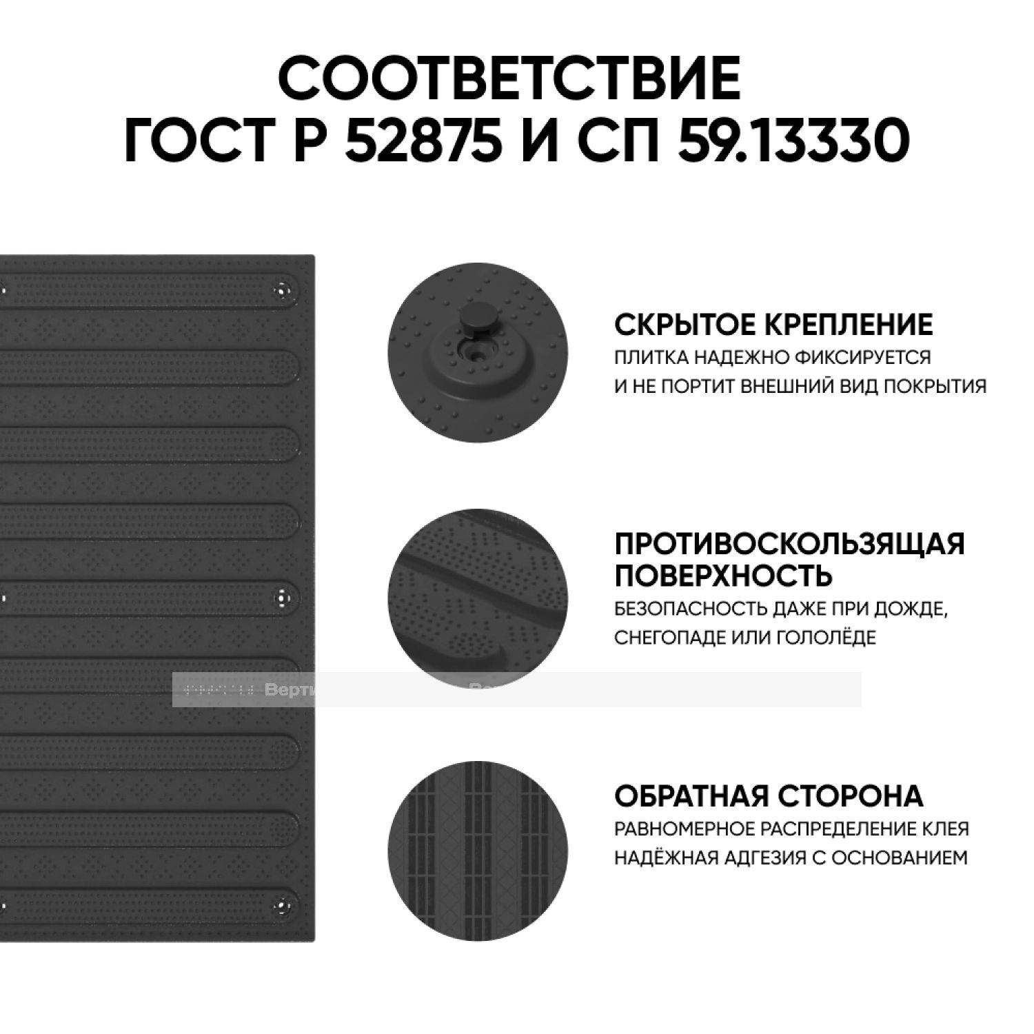 Плитка тактильная (направление движения, полоса) противоскользящая, 500х540х5, ПВХ, черный