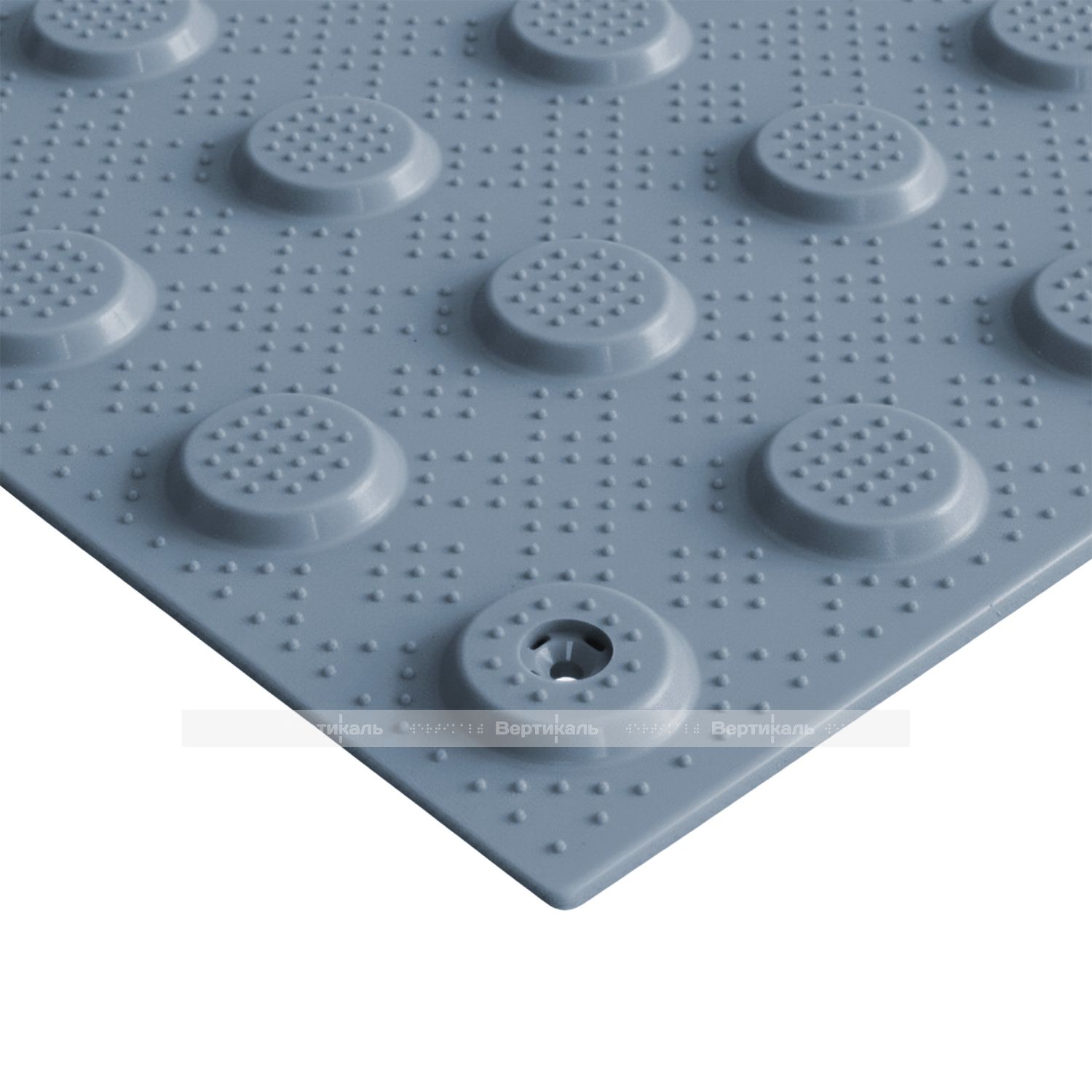 Не допускается применение изделий с более крупными ячейками, так как это значительно увеличит расход клеящего вещества. Для обеспечения контраста с подстилающей поверхностью, а также оптимального восприятия цвета слабовидящим человеком, тактильная плитка имеет серый цвет поверхности. Плитка предназначена для монтажа при помощи клея уже на имеющееся напольное покрытие. Специалисты компании «Вертикаль» рекомендуют использовать специальный клей FIXVERT. Тактильная плитка от компании «Вертикаль» рекомендована к применению ВОС и гос. программой «Доступная среда».