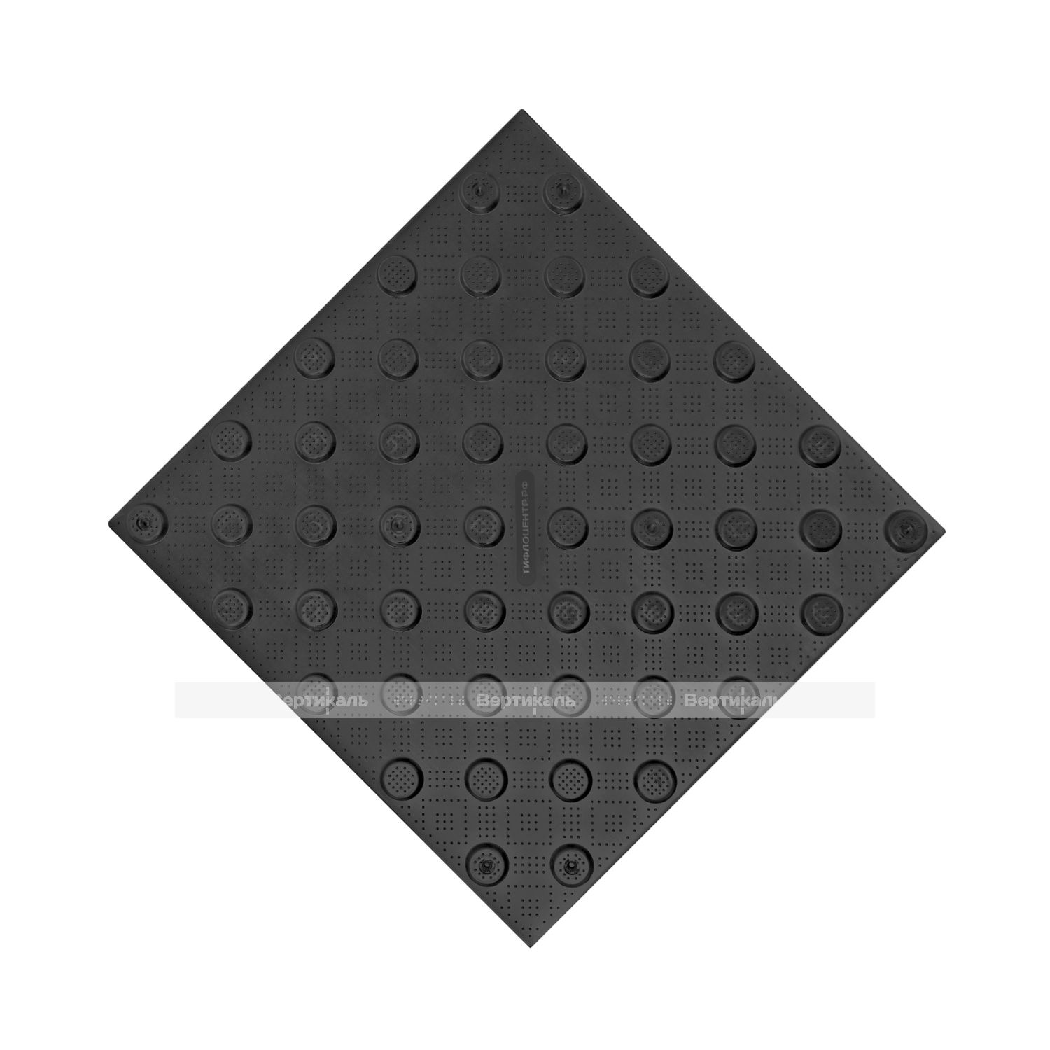 Плитка тактильная (непреодолимое препятствие, конусы шахматные) противоскользящая, 500х500х5, ПВХ, черный