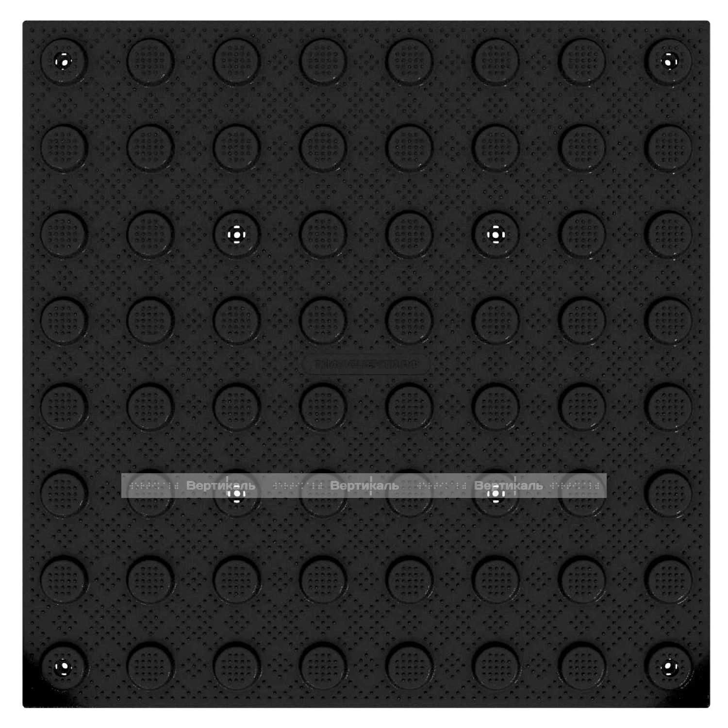 Плитка тактильная (преодолимое препятствие, поле внимания, конусы линейные) противоскользящая, 500х500х5, ПУ, черный
