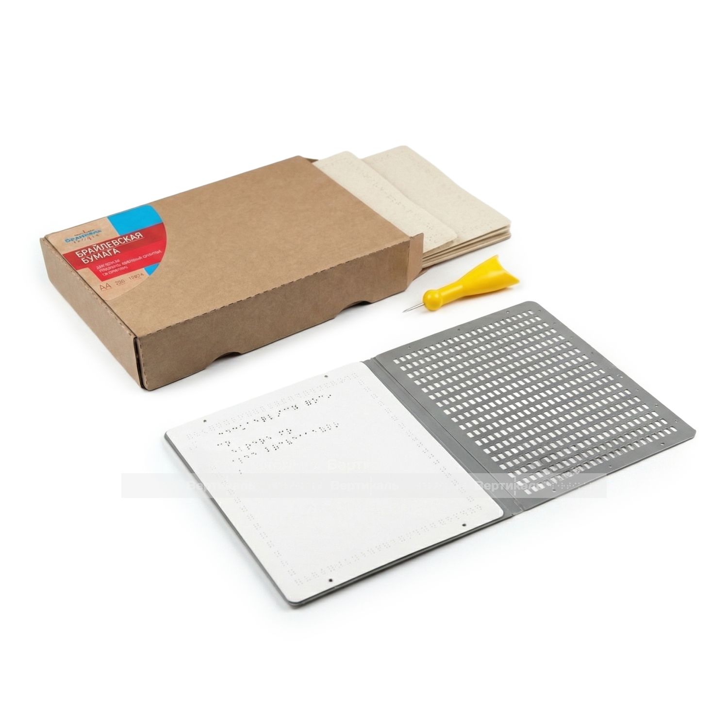 - Бумага Брайля - специальная бумага для чёткого отпечатка знаков.
