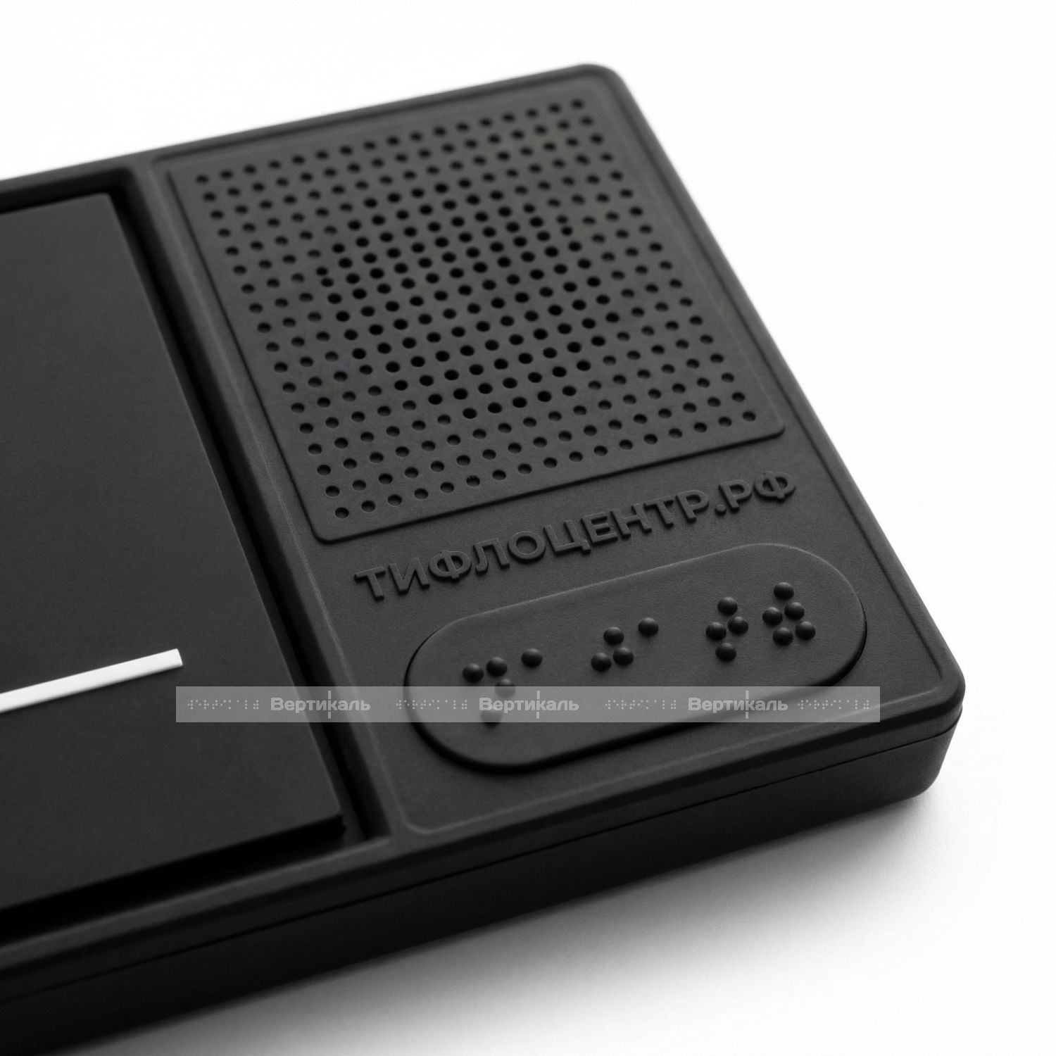- кнопка активации звуковых сообщений с инкрустированным шрифтом брайля;