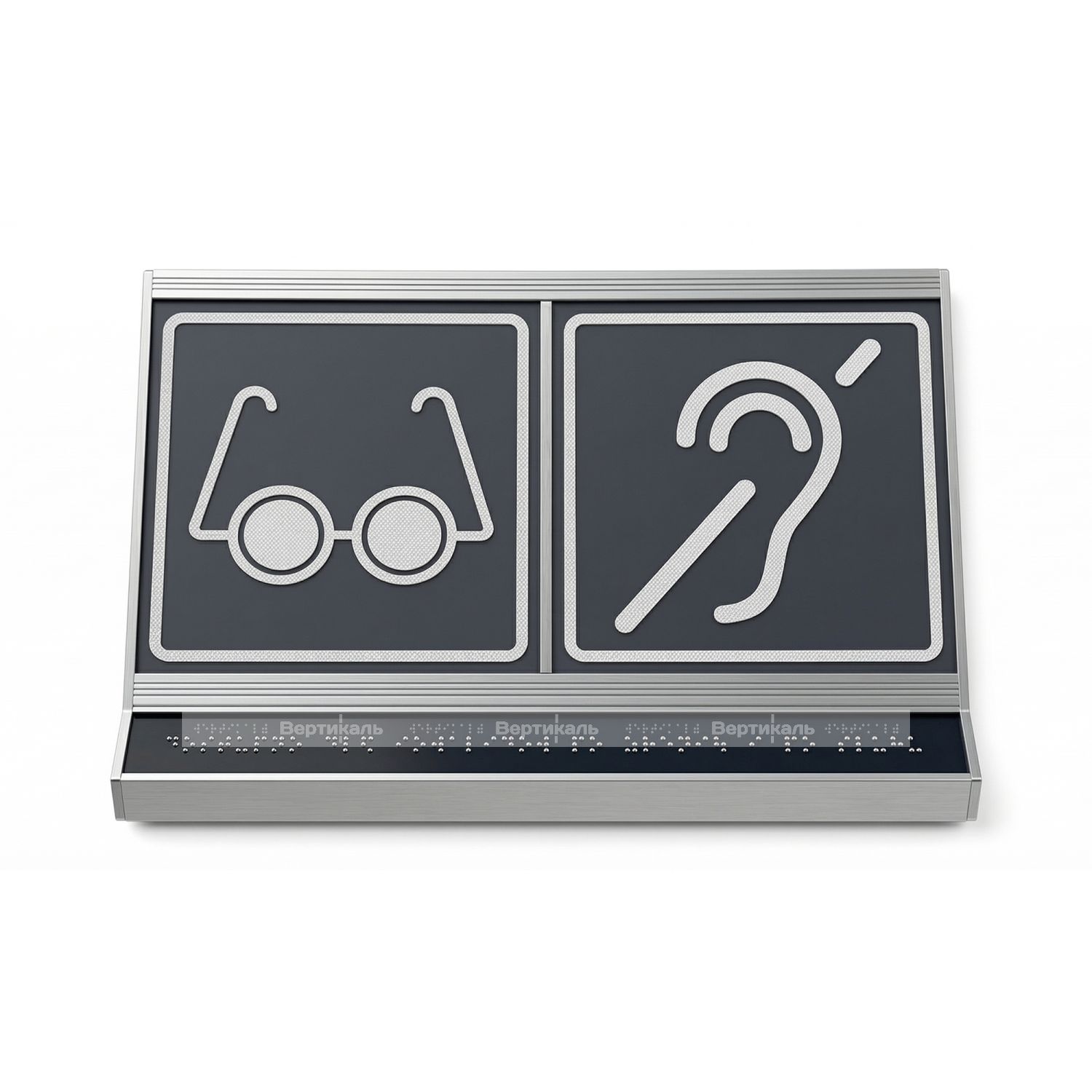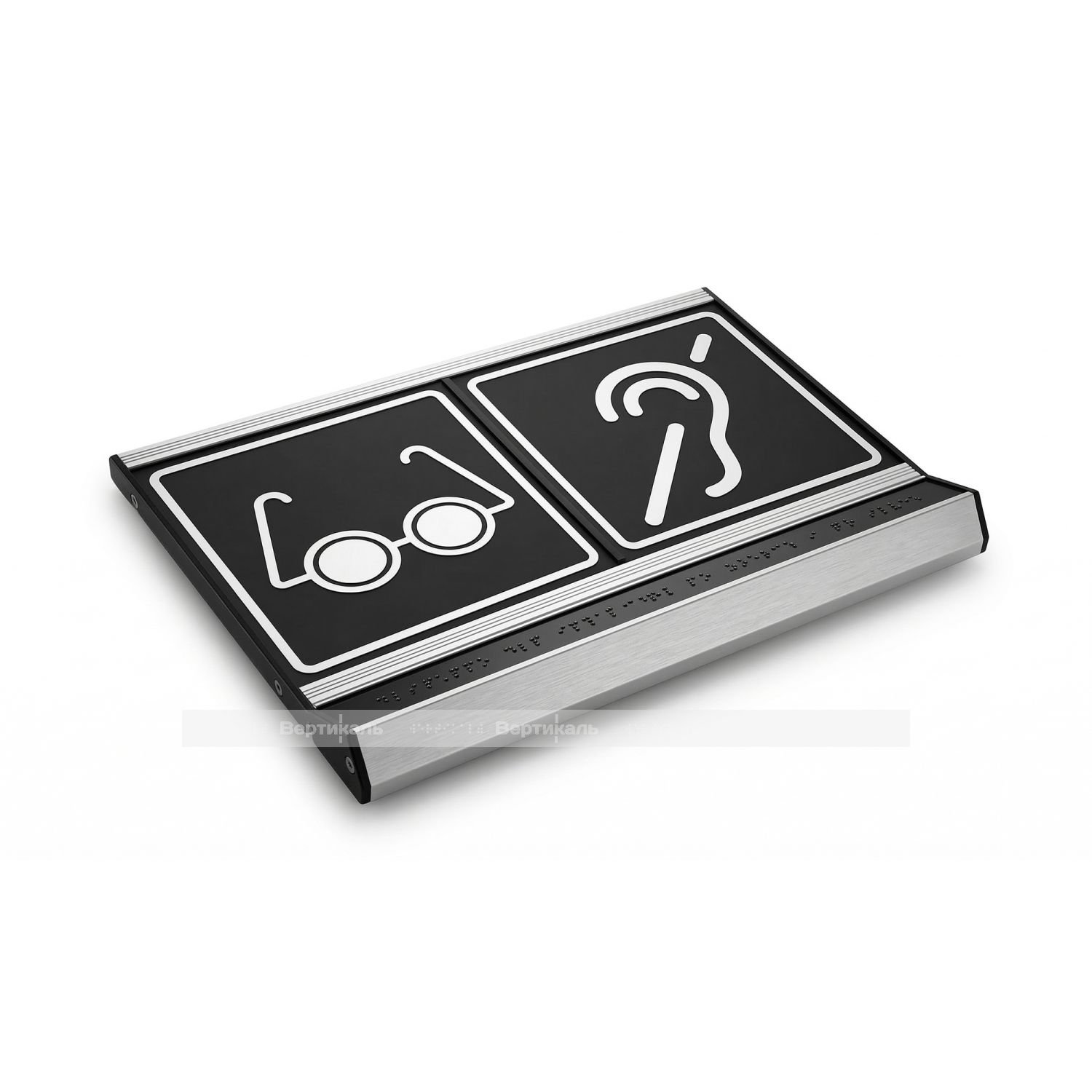 Пиктограмма тактильная, модульная "Доступность объектов для инвалидов по зрению и по слуху", с наклонным черным полем, двухсекционная, М3
