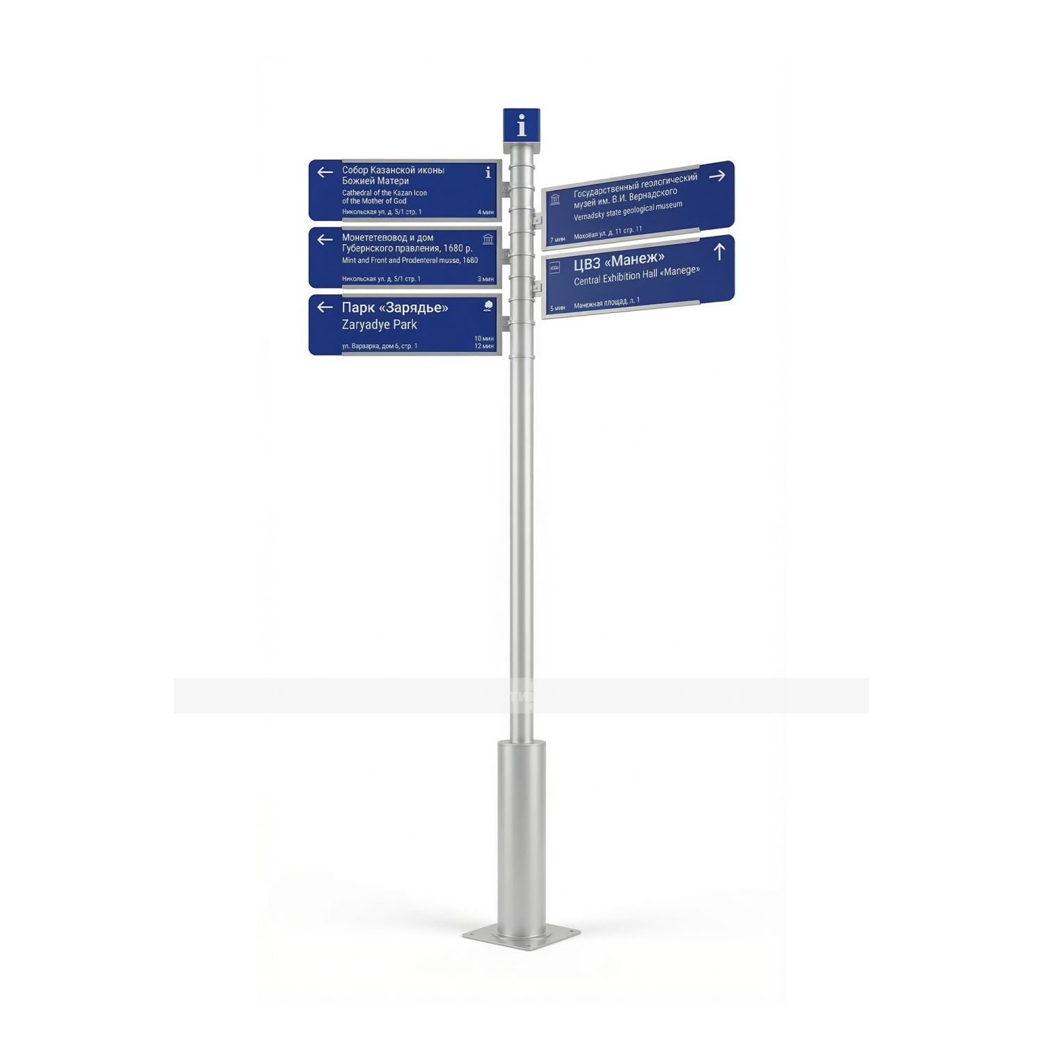 Городской указатель служит для навигации жителей и гостей, помогая быстро находить нужные объекты. Конструкция предусматривает поворотный механизм табличек, позволяющий легко обновлять информацию о направлениях без физического перемещения самого столба.