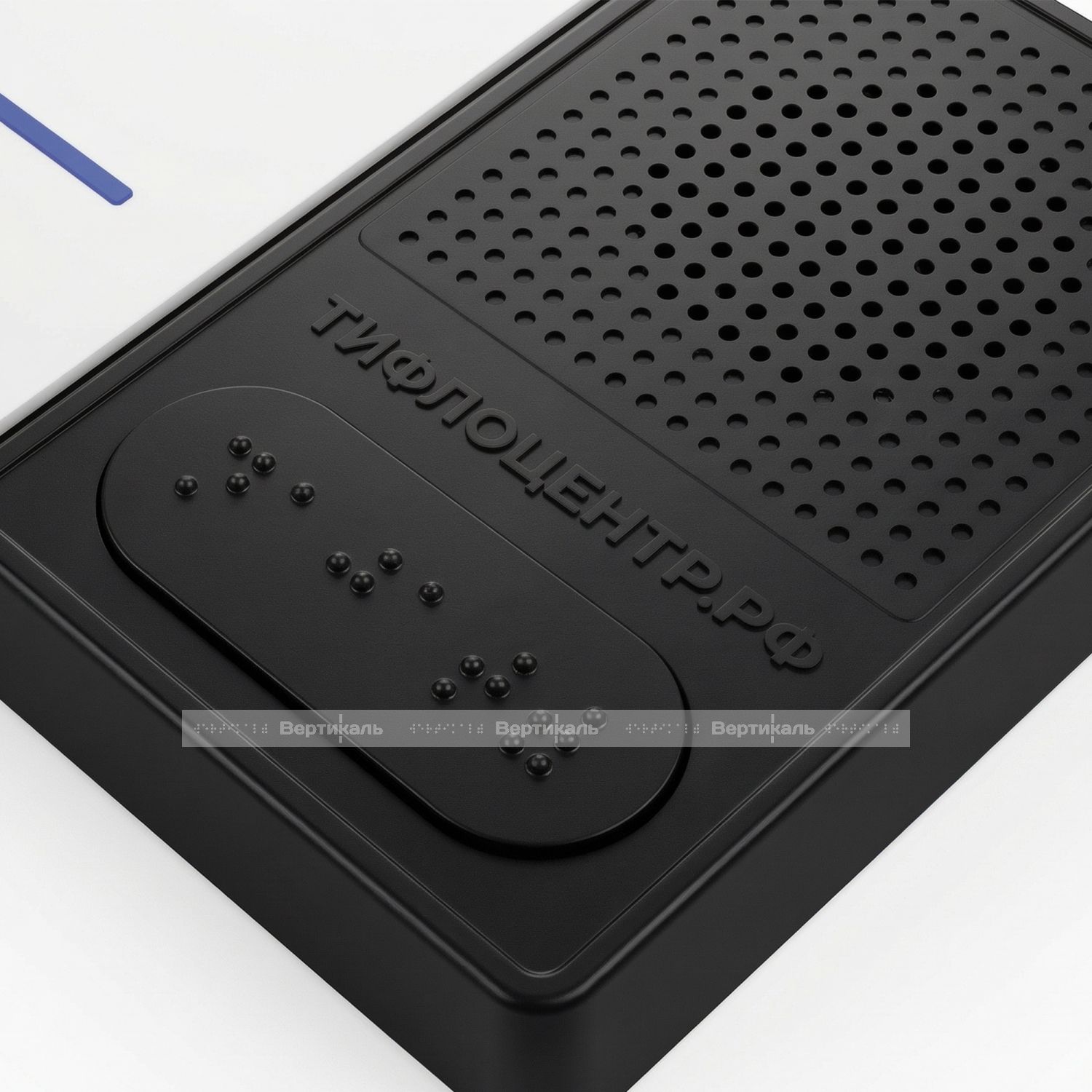 - кнопка активации звуковых сообщений с инкрустированным шрифтом брайля;