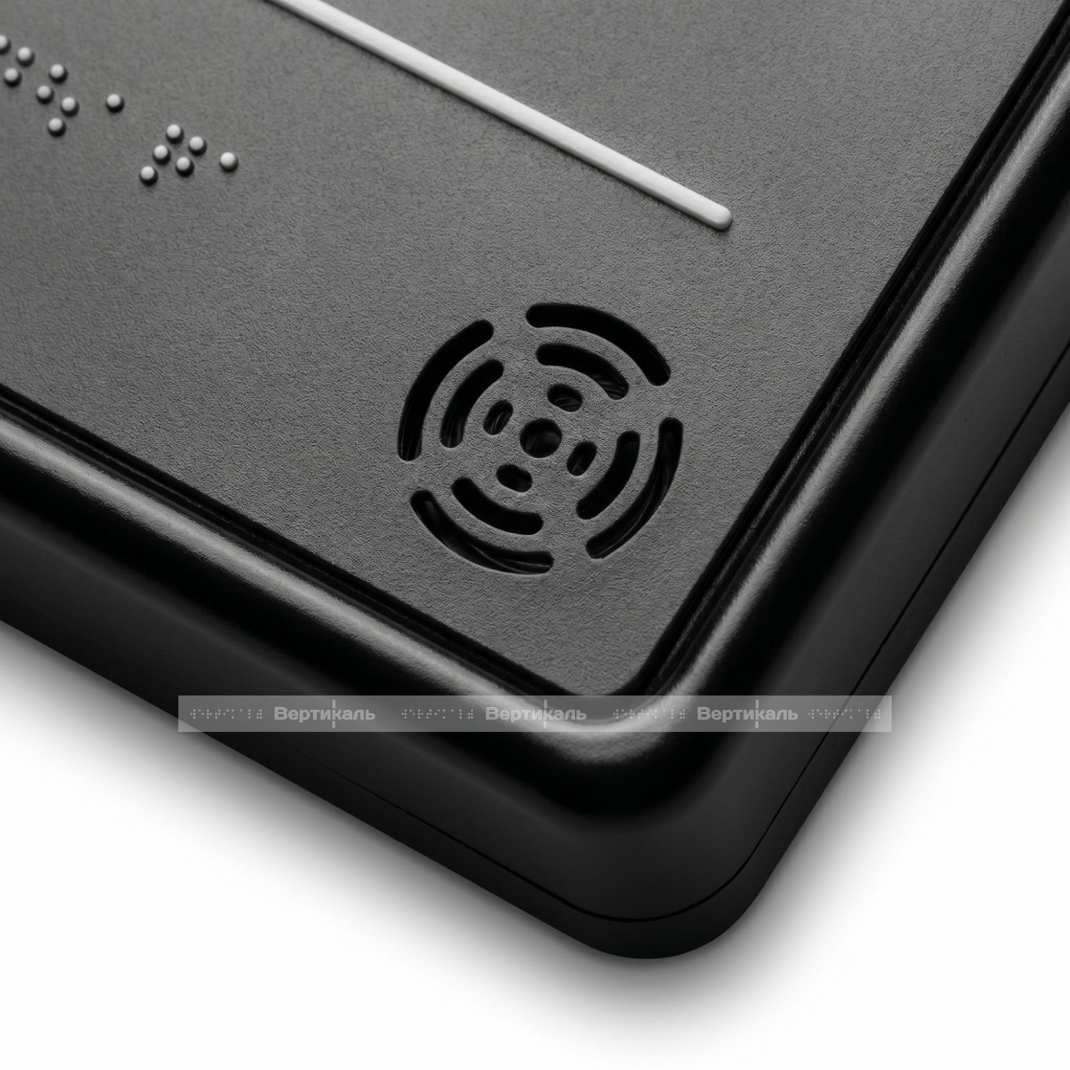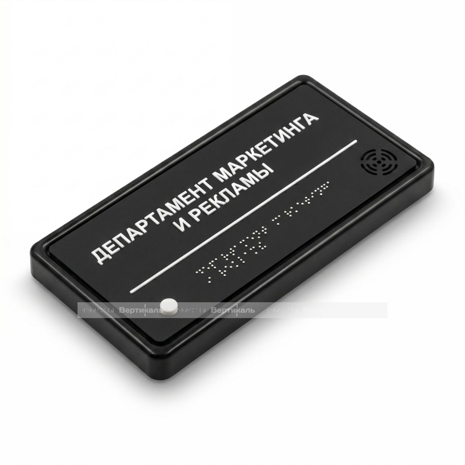 Где найти лучшую тактильную табличку? Закажите ее в Тифлоцентре «Вертикаль»! Наш тактильно-звуковой указатель с датчиком движения является уникальным, поскольку доступна возможность записывать сообщения без вскрытия корпуса изделия, а широкий направленный угол работы динамика позволит наиболее точно донести информацию до посетителей.