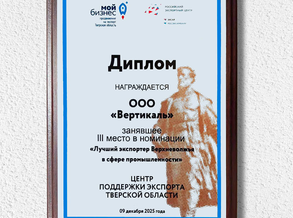 Конкурс проводится с 2015 года Центром поддержки экспорта (в структуре Центра «Мой бизнес» Тверской области) при поддержке регионального Министерства экономического развития. Его ключевые задачи – выявление, поддержка и поощрение компаний и предпринимателей, достигших значительных успехов во внешнеэкономической деятельности. Успех ООО «Вертикаль» подтверждает растущее международное признание тактильной продукции, которую компания разрабатывает и производит для маломобильных групп населения.