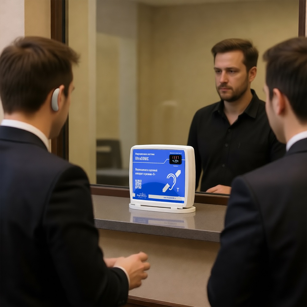 Тут на помощь и приходит индукционная система, которая блокирует посторонние шумы за пределами определенной площади. В случае «UltraSonic» данная площадь составляет 1,2 м2. Система идеально подходит для размещения в зонах обслуживания: на кассовых стойках, в информационных центрах, административных окнах и других местах массового посещения.