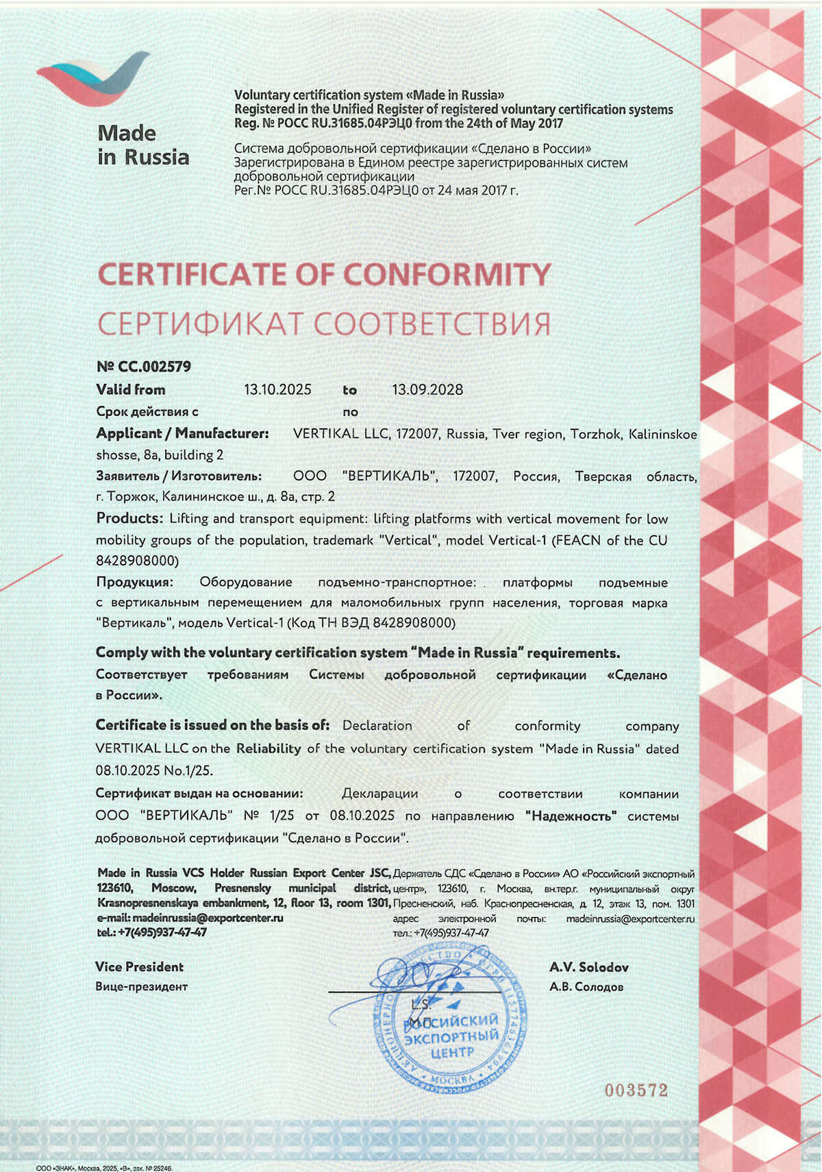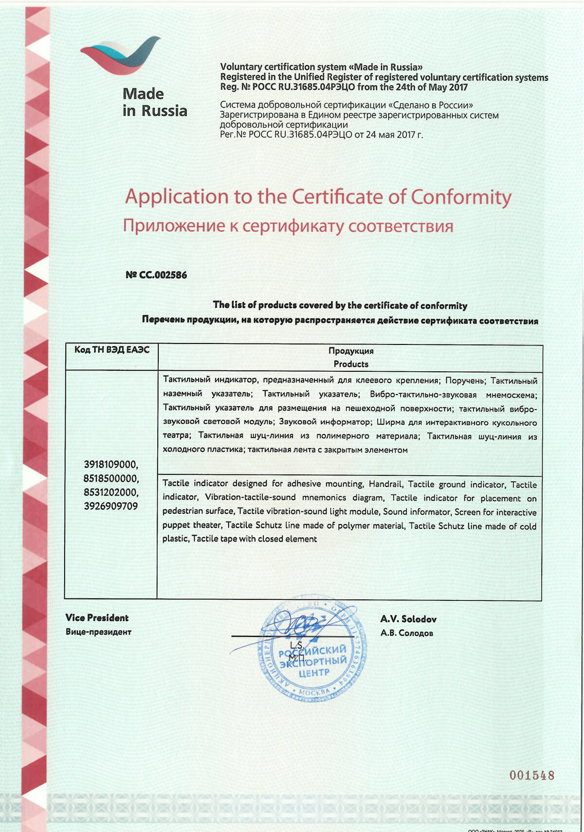 Государственная программа «Доступная среда» устанавливает высокие стандарты качества и безопасности оборудования для МГН. Тифлоцентр «Вертикаль» реализует оборудование с полным соответствием требованиям нормативной документации Российской Федерации, о чем свидетельствует большое количество сертификатов качества.