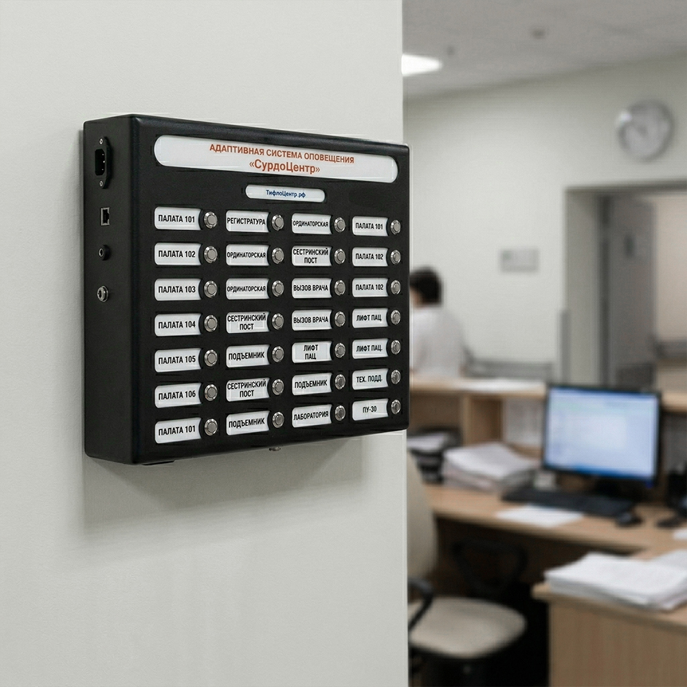 «СурдоЦентр» – это не разрозненный набор приборов, а целостная экосистема с жесткой проводной коммутацией. В основе конструкции лежит каскадная иерархия, включающая центральный модуль управления, разветвители-хабы и конечные абонентские устройства – визуально-акустические табло (ВАТ). Выбор в пользу проводного соединения продиктован требованиями отказоустойчивости: в сравнении с радиоканальными аналогами данная схема гарантирует высокую помехозащищенность и стабильность работы при срабатывании тревожных датчиков.